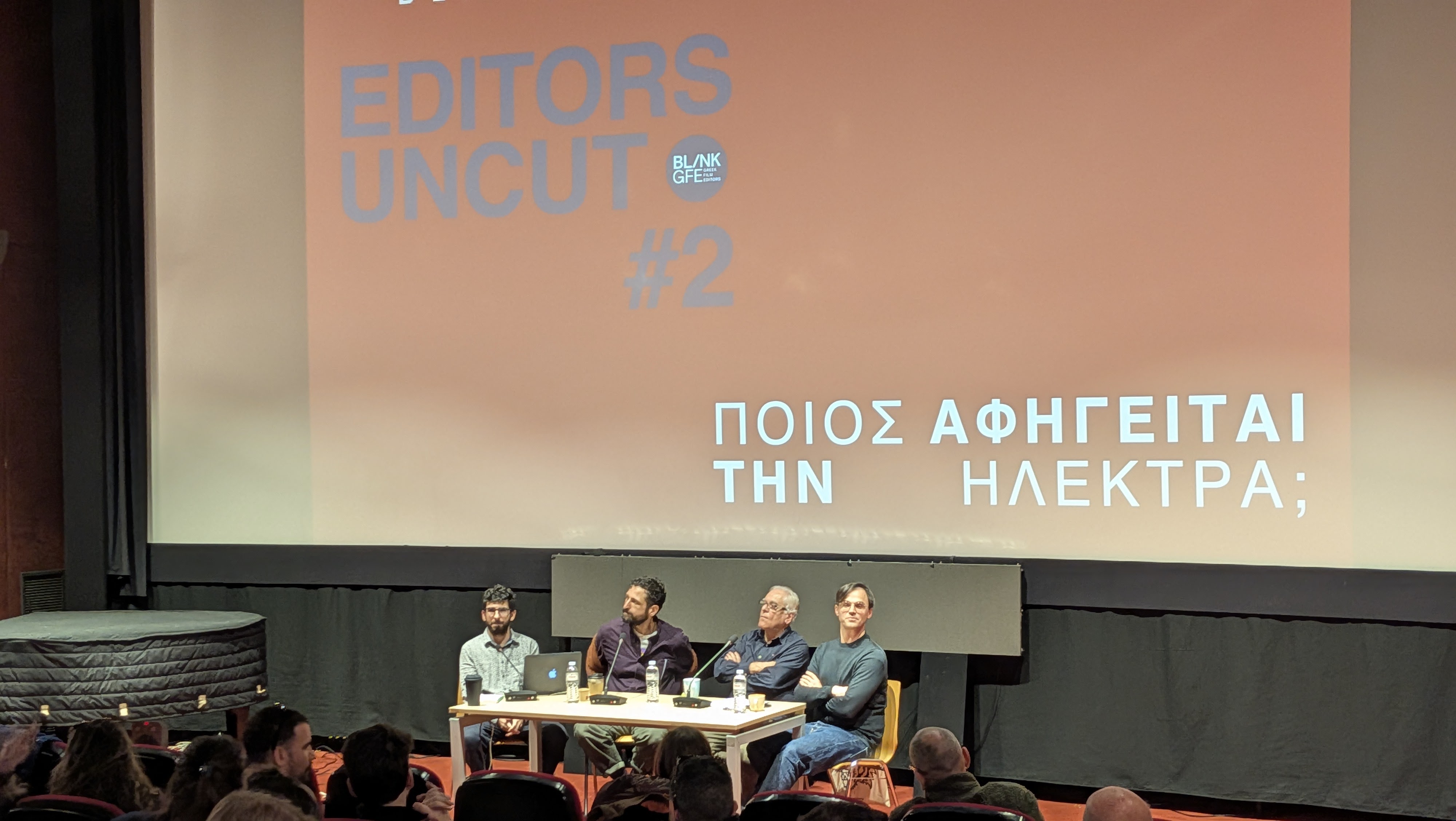 Στη σκηνή του Editors Uncut #2, ο σεναριογράφος Παναγιώτης Χριστόπουλος, οι μοντέρ Γιώργος Μαυροψαρίδης και Στάμος Δημητρόπουλος, και ο σκηνοθέτης Νεριτάν Ζιντζιρία αποκάλυψαν τη δημιουργική διαδικασία πίσω από την Ηλέκτρα7 και συζήτησαν για τον κινηματογράφο ως πράξη συγγραφής.